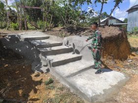 ” Anak tangga ini bagus kuat dan kokoh serta rapi karena satgas TMMD membuat nya dengan takaran adukan yang sempurna sehingga hasil nya tidak di ragukan lagi ” ujar Serda Andika anggota satgas TMMD.