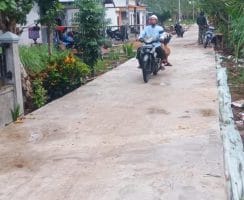 Bapak Isma’il selaku warga setempat sangat senang dan antusias atas pembangunan jalan rabat beton sepanjang 1.100 meter di desa mereka.