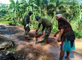 Kubu Raya – Pengerjaan fisik seperti akses jalan sasaran fisik program TMMD ke-111 Kodim 1207/Pontianak yang berlokasi di Dusun Maju Jaya, Desa Kuala Mandor B, Kecamatan Kuala Mandor B, Kabupaten Kubu Raya dikerjakan dengan bergotong royong bersama warga untuk mewujudkan rasa kesatuan antara anggota TNI bersama masyarakat, Senin (05/07/2021).