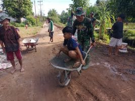 Salah satunya dengan membangun keakraban antara anggota TNI dan anak desa, dimana para anggota TMMD ini mendorong arco yang dinaiki anak-anak yang sedang libur sekolah. Kegiatan ini dilakukan untuk menarik simpatik anak-anak agar semakin akrab denga personil TMMD.