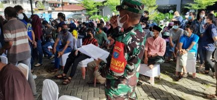 “Setelah para Babinsa jajaran Kodim 1207/Pontianak yang sedang melaksanakan TMMD ke-111 di Dusun Maju Jaya, Desa Kuala Mandor B, mensosialisasi tentang kegiatan vaksinasi di wilayah binaannya masing-masing, warga pun mengerti bahwa vaksin itu baik dan akhirnya mereka berbondong-bondong datang untuk divaksin, pelaksanaan vaksin ini dilakukan sesuai anjuran pemerintah agar semua warga dapat divaksin dan target satu juta orang per hari dapat tercapai. Hari ini pelaksanaan serbuan vaksinasi di Kota Pontianak dilaksanakan 3 titik yaitu Warunk Upnormal, Restoran Pondok Nelayan dan Pelabuhan Seng Hie” tambah Dandim 1207/Pontianak.