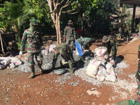 Kubu Raya – Kegiatan pembangunan sasaran fisik di lokasi TMMD ke-111 Kodim 1207/Pontianak yang berada di Dusun Maju Jaya, Desa Kuala Mandor B, Kecamatan Kuwala Mandor B, Kabupaten Kubu Raya, sudah selesai dilaksanakan. Walaupun secara resmi kegiatan ini telah ditutup, namun pasca TMMD anggota satgas masih tetap bergotong royong mengumpulkan sisa-sisa material seperti batu dan pasir, Kamis (15/07/2021).