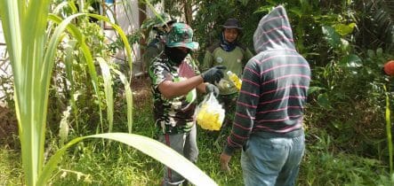 Terlihat masyarakat  bersama TNI  meneguk  minuman yang telah dibagikan oleh Sertu Suryandi seorang Bintara Logistik di lokasi TMMD, supaya tidak kekurangan air minum (dehidrasi). Sertu Suryandi pun setiap hari menyediakan air mineral untuk satgas TMMD dan warga yang sedang bekerja.