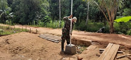 Sasaran fisik berupa ribuan meter jalan rabat beton sudah mulai nampakkan hasil, berarti tinggal beberapa ratus meter lagi akan capai finishnya. Tak mau kalah dalam aktivitas, tiang bendera pun mulai berdatangan di lokasi TMMD ke-111 Kodim 1207/Pontianak.
