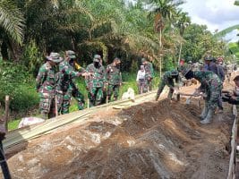 Kubu Raya – Tim wasev kunjungi lokasi TMMD ke-111 Kodim 1207/Pontianak di Dusun Maju Jaya, Desa Kuala Mandor B, Kecamatan Kuala Mandor B, Kabupaten Kubu Raya. Disinilah lokasi TMMD berlangsung, dengan sasaran fisik pembuatan jalan rabat beton sepanjang 1.100 meter yang dikerjakan satgas TMMD dan masyarakat setempat, Jumat (09/07/2021).