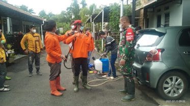 Pontianak – Banyak cara yang dilakukan untuk mencegah penularan virus covid-19, salah satunya dengan penyemprotan disinfektan di rumah warga. Hal inilah yang dilakukan oleh anggota satgas TMMD ke-111 Kodim 1207/Pontianak yang juga bertugas sebagai Babinsa Koramil 1207-04/Pontianak Timur. Setelah kegiatan TMMD di Desa Kuala Mandor B selesai, anggota satgas melanjutkan kegiatannya mendampingi relawan melakukan penyemprotan disinfektan dengan sasaran rumah warga di Kelurahan Saigon, Kecamatan Pontianak Timur, untuk mendukung program pemerintah dalam penanganan dan pencegahan covid-19, Sabtu (17/07/2021).