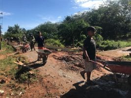 Dalam kesempatan yang sama terlihat seorang remaja warga Dusun Maju Jaya bernama Yoga tengah mengangkut material cor yang sudah diaduk dengan menggunakan gerobak dorong (arco). Saat ditanya mengapa ia mau membantu anggota satgas bekerja, ia mengatakan, “Saya senang ada disini, ditengah-tengah bapak TNI yang sedang membangun jalan desa saya. Cita-cita saya juga ingin menjadi seorang prajurit TNI, jadi sekarang saya ingin merasakan dulu bagaimana membantu bapak-bapak TNI bekerja keras membangun jalan untuk mensejahterakan rakyatnya sebelum saya benar-benar bergabung menjadi seorang anggota TNI nantinya” ucapnya.