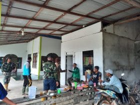 Kubu Raya – Kesibukan dan kesungguhan melaksanakan program TMMD tidak menjadi penghalang bagi satgas TMMD ke-111 Kodim 1207/Pontianak di Dusun Maju Jaya, Desa Kuala Mandor B, Kecamatan Kuala Mandor B, Kabupaten Kubu Raya, dalam menjalin keakraban dengan masyarakat. Satgas TMMD selalu menyempatkan diri untuk berkomunikasi sosial (komsos) bersama warga setempat dengan memanfaatkan waktu istirahat, Kamis (15/07/2021).