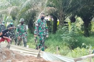 Kubu Raya – Dandim 1207/Pontianak mendampingi kunjungan dari ster TNI dan kemhan ke lokasi TMMD ke-111 Kodim 1207/Pontianak di Dusun Maju Jaya, Desa Kuala Mandor B, Kecamatan Kuala Mandor B, Kabupaten Kubu Raya, Kamis (15/07/2021).