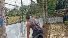 Memasuki hari kedua puluh sembilan, Satgas TMMD ke 111 Kodim 0212/TS, membantu Adinda Ridho Siregar masyarakat mengecat pagar sekolah, Desa Siuhom, Kec. Angkola Barat, Kab. Tapanuli Selatan.