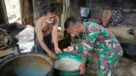 Hari kedua puluh sembilan, Satgas TMMD ke 111 Kodim 0212/TS. membantu Ibuk Ernawati HSB dalam rangka UMKM pengolahan kacang kedelai menjadi tempe di Desa Siuhom, Kec Angkola Barat, Kab Tapanuli Selatan