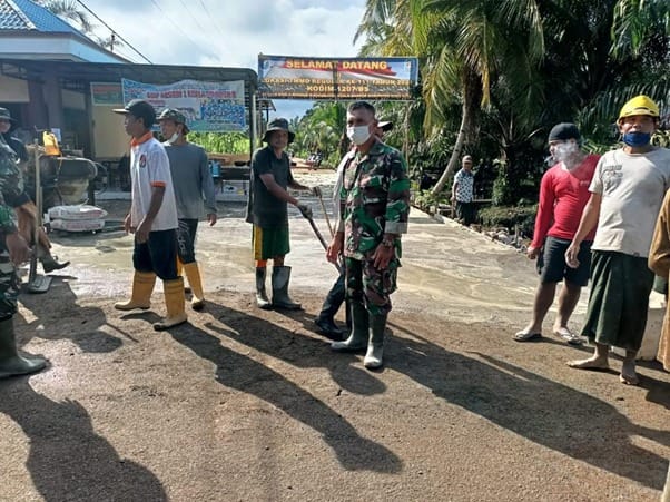 Optimalkan Layanan Lalu Lintas, Satgas TMMD Ke-111 Kodim 1207/Pontianak Laksanakan Kegiatan Pemeliharaan Jalan Bersama Warga