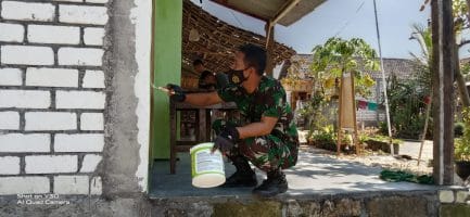 Gresik,- Proses pemasangan dinding di rumah Karjono (53), warga Dusun Bejan, Desa Siwalan, Kecamatan Panceng, Kabupaten Gresik, salah satu dari 13 penerima program rehab RTLH (Rumah Tidak Layak Huni) program TMMD Reguler 111 Kodim Gresik, juga dilakukan dengan hati-hati supaya hasilnya presisi.
