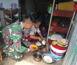 “Kami sedang membantu mengupas buah untuk nantinya dibuat rujak,” kata Serda Dhika Arminia.