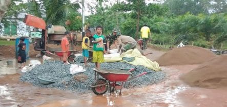 Seperti yang terjadi di Dusun Maju Jaya, Desa Kuala Mandor B, Kec.Kuala Mandor B,Kab.Kubu Raya satgas TMMD bahu-membahu bersama masyarakat setempat walaupun gerimis Namun pekerjaan tetap dilanjutkan.
