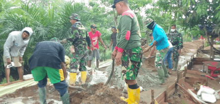 Kubu Raya – Berlokasi di Sasaran TMMD Dusun Maju Jaya Rt.03 Rw .03 Desa Kuala Mandor B Dan SST TMMD Kodim 1207 Pontianak Kapten Arm Tri Yuliantoro terjun langsung ikut Mengaduk semen. Mengingat waktu yang tersisa sangat singkat dan dihadapkan dengan cuaca yang tidak menentu ,dan TMMD akan selesai dan ditutup, Rabu (14/07/2021).