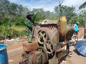 Salah satunya pengecoran jalan sepanjang 1.100 meter terus dikebut. Walaupun kadang cuaca kurang mendukung namun tidak menyurutkan niat anggota TNI dan masyarakat untuk terus bekerja. Terik matahari dan udara panas menjadi tantangan yang harus ditaklukkan. Bunyi mesin molen yang menggema ibarat lantunan lagu yang akan memberikan semangat di antara keringat yang bercucuran.