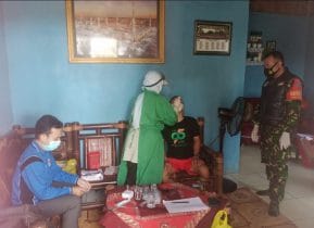 Kubu Raya – Meningkatnya jumlah pasien yang terpapar covid-19 membuat petugas kesehatan sibuk melaksanakan tugas sebagai tracer covid-19. Hal inilah yang dilakukan Babinsa Koramil 1207- 08/Teluk Pakedai (Serda Samsiar) harus meninggalkan sementara tugasnya sebagai personil satgas TMMD ke-111 Kodim 1207/Pontianak, karena harus turun ke desa binaannya untuk mendampingi petugas dari puskesmas Teluk Pakedai untuk melaksanakan tracking kepada pasien dan keluarga yang terduga terpapar virus covid-19,Rabu (14/07/2021).