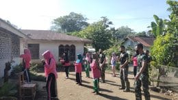 Hari kedua puluh sembilan, Satgas TMMD ke 111 Kodim 0212/TS, meluangkan waktu senam bersama masyarakat Desa Siuhom, Kec Angkola Barat, Kab Tapanuli Selatan