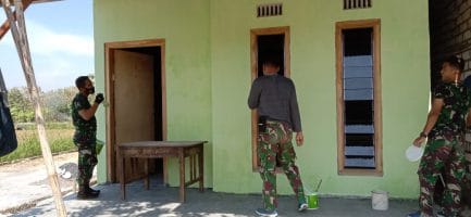 Satgas TMMD ke-111 Kodim 0817/Gresik, pengecatan di rumah Ibu Tasriah yang di laksanakan oleh anggota Satgas TMMD , Desa Siwalan, Kec Panceng, Kab. Gresik.