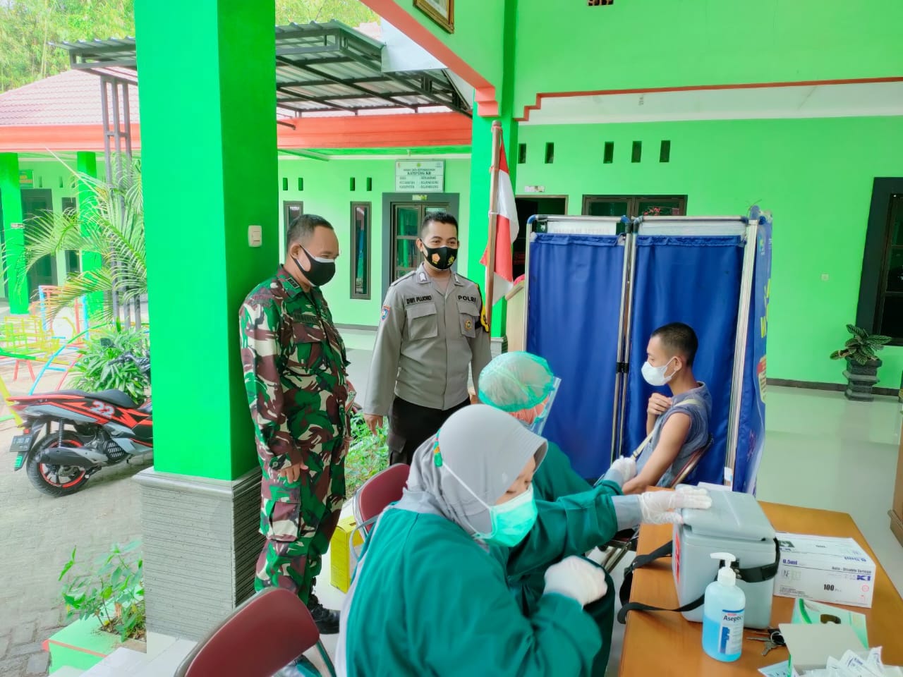 Kegiatan vaksinasi massal terus dilakukan secara bertahap, dengan pengawalan Babinsa bersinergi dengan Bhabinkamtibmas dan pihak pemerintah desa.