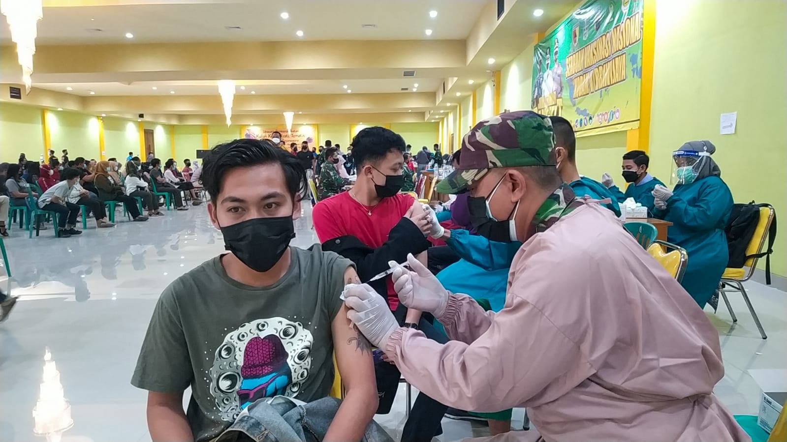 “Para peserta mengikuti kegiatan sesuai dengan prosedur mulai dari pendataan oleh petugas medis, screening kesehatan fisik, cek suhu tubuh dan tekanan darah hingga penyuntikan vaksin,” tambah Kasdim.