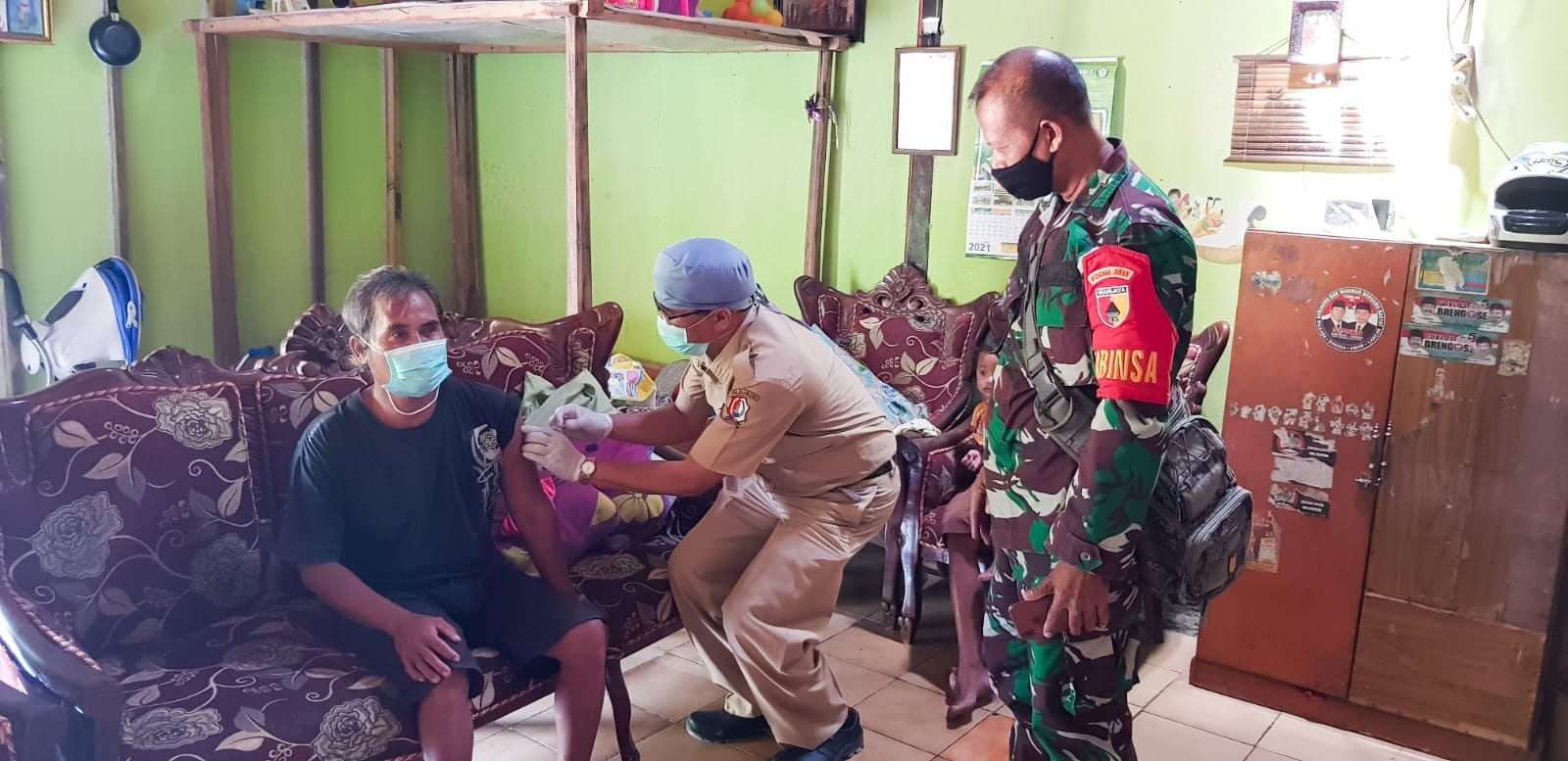 Seperti yang terlihat, Empat Pilar Kecamatan Kapas Kabupaten Bojonegoro, yang terdiri dari Babinsa, Bhabinkamtibmas, Perangkat Desa dan Tenaga Kesehatan dari Puskesmas Kapas, dengan sistem jemput bola atau door to door bersinergi melaksanakan serbuan vaksinasi kepada penyandang disabilitas dan Orang Dengan Gangguan Jiwa (ODGJ).