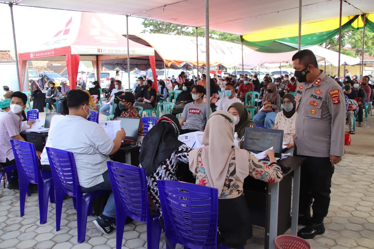 Kapolres Pringsewu AKBP Hamid Andri Soemantri, SIK saat meninjau pelaksanaan vaksinasi mengungkapkan, vaksinasi dosis kedua digelar dalam upaya mempercepatan pembetukan kekebalan kelompok (herd immunity). dan merupakan satu cara menuju Indonesia sehat dan keluar dari pandemi Covid-19.