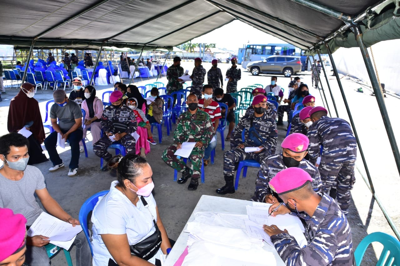 Vaksinasi Covid-19 yang mengerahkan tenaga kesehatan dari Koarmada III, Lantamal XIV, Pasmar 3 dan anggota KRI Soeharso-990 melayani vaksinasi tahap pertama dan kedua untuk jenis Vaksin Sinovac, tahap pertama untuk jenis Sinopharm dan Vaksin Astrazeneca bagi masyarakat yang melaksanakan vaksinasi tahap kedua.