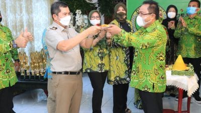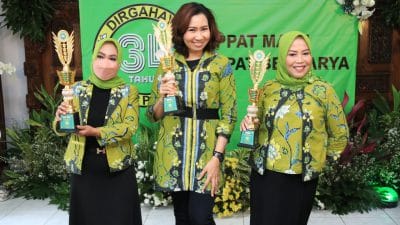 Pemenang lomba sedang memegang piala di peringatan HUT PPAT ke-34.