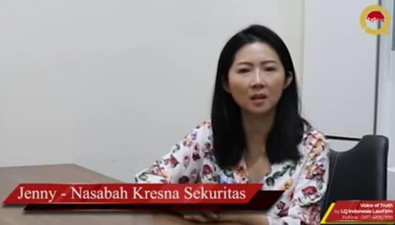 Korban A, J dan C dirugikan oleh Kresna Sekuritas sejumlah 58 Milyar rupiah lalu menghubungi LQ di Hotline 0817-489-0999 dan memberikan kuasa lalu korban melapor ke Polda Metro Jaya dengan LP # 4834 / VIII/ YAN 2.5/ 2020/ SPKT PMJ Tanggal 14 Agustus 2020 dengan Terlapor Michael Steven, Inggrid, Oktavianus Budianto, Jimmy Nyo dan Dewi Ria Juliana. LP tersebut jatuh ke Subdit Fismondev dan ditangani Unit 4.