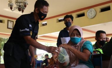 TRENGGALEK,NUSANTARAPOS,- Ada yang unik dalam pelaksanaan vaksinasi di Trengggalek Jawa Timur, kali ini orang yang selesai menerima suntikan vaksin diberi bingkisan berupa sayu dan lauk pauk.