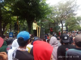 Massa datang dengan mengendarai truk, mobil hingga seepsa motor dari arah timur dan barat jalan raya Panglima Sudirman, Kota Kraksaan. Setibanya di depan kantor Bupati Probolinggo, massa turun untuk menyampaikan aspirasinya.