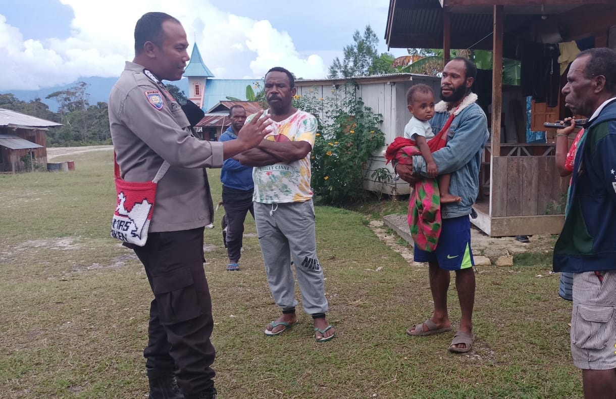Binmas Noken Polres Mamberamo Tengah yang mengunjungi Tokoh Masyarakat dan juga warga tersebut yakni, Iptu Yustinus Wudu bersama kedua personelnya.