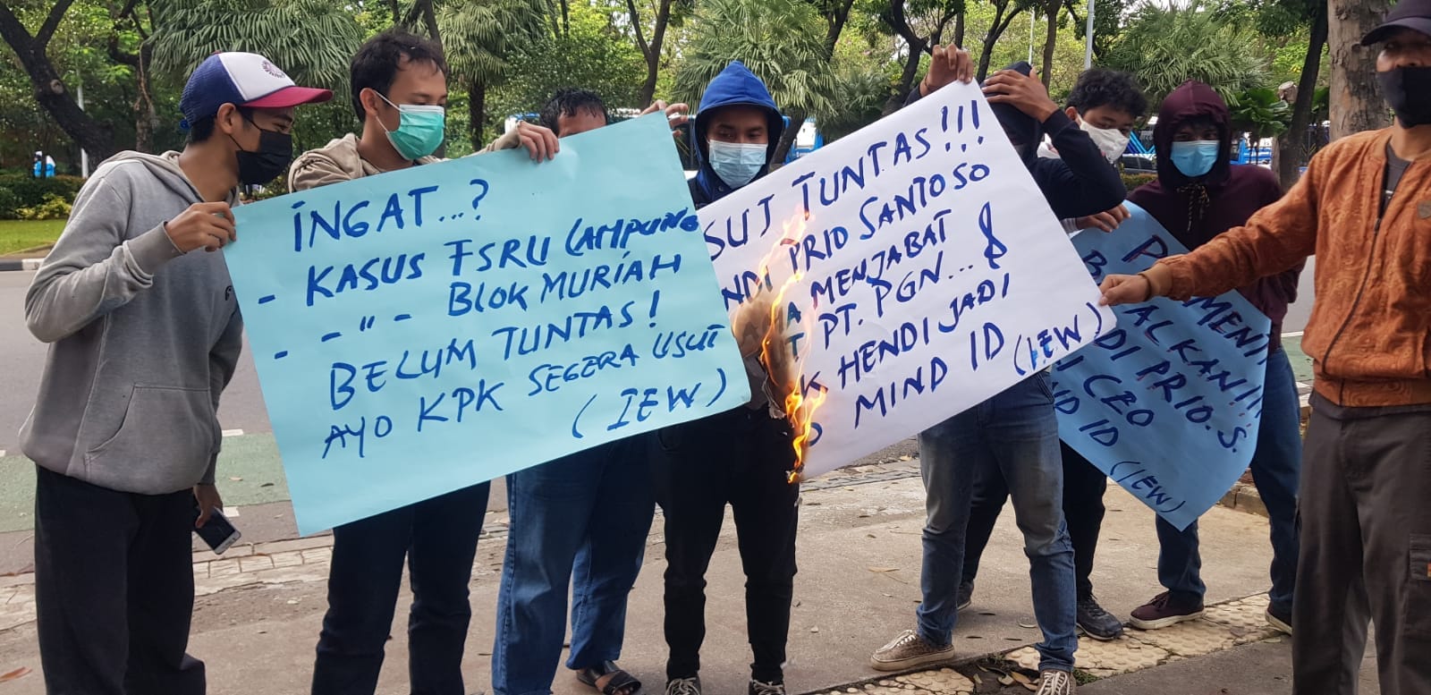 Masa mendesak Menteri BUMN Erick Tohir untuk membatalkan pengangkatan Hendi Prio Santoso sebagai CEO Mining Industry Indonesia (MIND ID). Masa sempat membakar poster-poster yang di bawa untuk mengungkapkan kekecewaan atas langkah Erick Tohir.