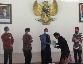 Momen tersebut menjadi kesempatan untuk penyerahan Akta Notaris dari Kemenkumham AHU melalui Dinas Kebudayaan Provinsi Jawa Timur dan Forum Komunikasi Pangarsa pranatacara dan Pamedar Sabda (FKKP) Jatim.