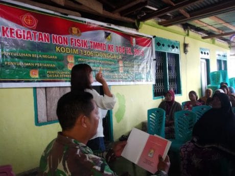 Donggala,- Pelaksanaan TMMD dalam program non fisik yang dilakukan oleh Kodim 1306/DGL memberikan wahana baru bagi masyarakat sebagai penambah pengetahuan kepada mereka. Mereka kelihatan tampak antusias dalam mengikuti acara yang diberikan oleh Bidan Yiliana di Desa Bakubakulu, Jumat (15/3/19)