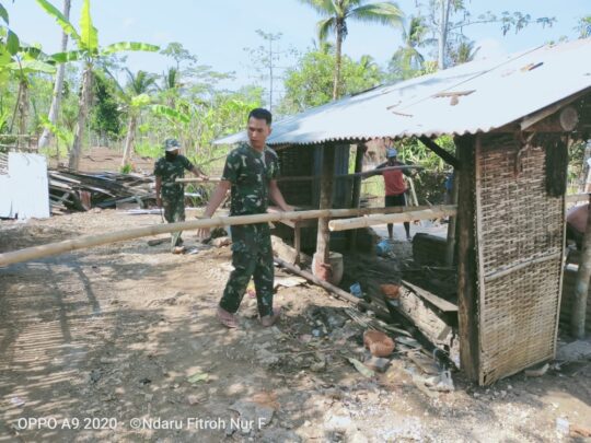 Dengan bermodalkan batangan bambu yang ada dapurpun dapat dipindahkan sehingga proses pembangunan RTLH milik Bapak Sumadi dapat berjalan dengan lancar. (Pendim 0818)