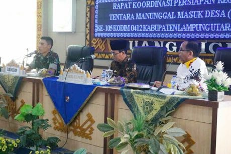 Nusantarapos,- Pemerintah Kabupaten (Pemkab) Lampung Utara (Lampura) bersama Kodim 0412/LU, adakan pertemuan terkait rencana kegiatan TMMD (TNI Manunggal Membangun Desa) ke 105, di aula ruang Siger Kantor Pemda setempat, (13/6).